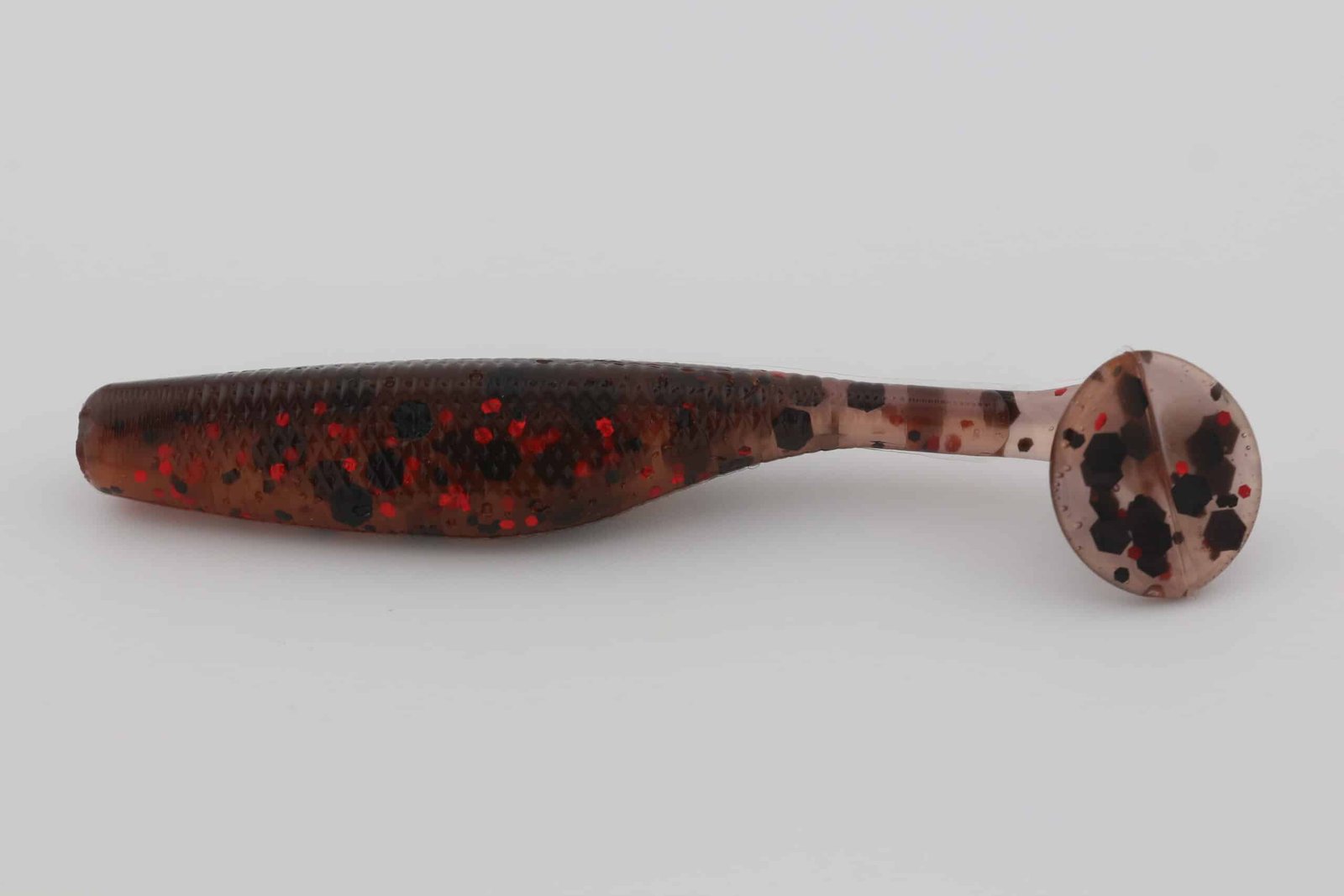 Crawfish Orange is built with a Brown back and a NeoOrange belly, giving the bait a clear top-to-bottom contrast that reads naturally in the water. Suspended glitter—Black (0.125″) (1/4 tsp), Fire Red 4202 (0.025″), Black 4201 (0.025″) (1/8 tsp)—adds controlled flash that mimics scale flicker as the bait rolls, swims, or pulses.