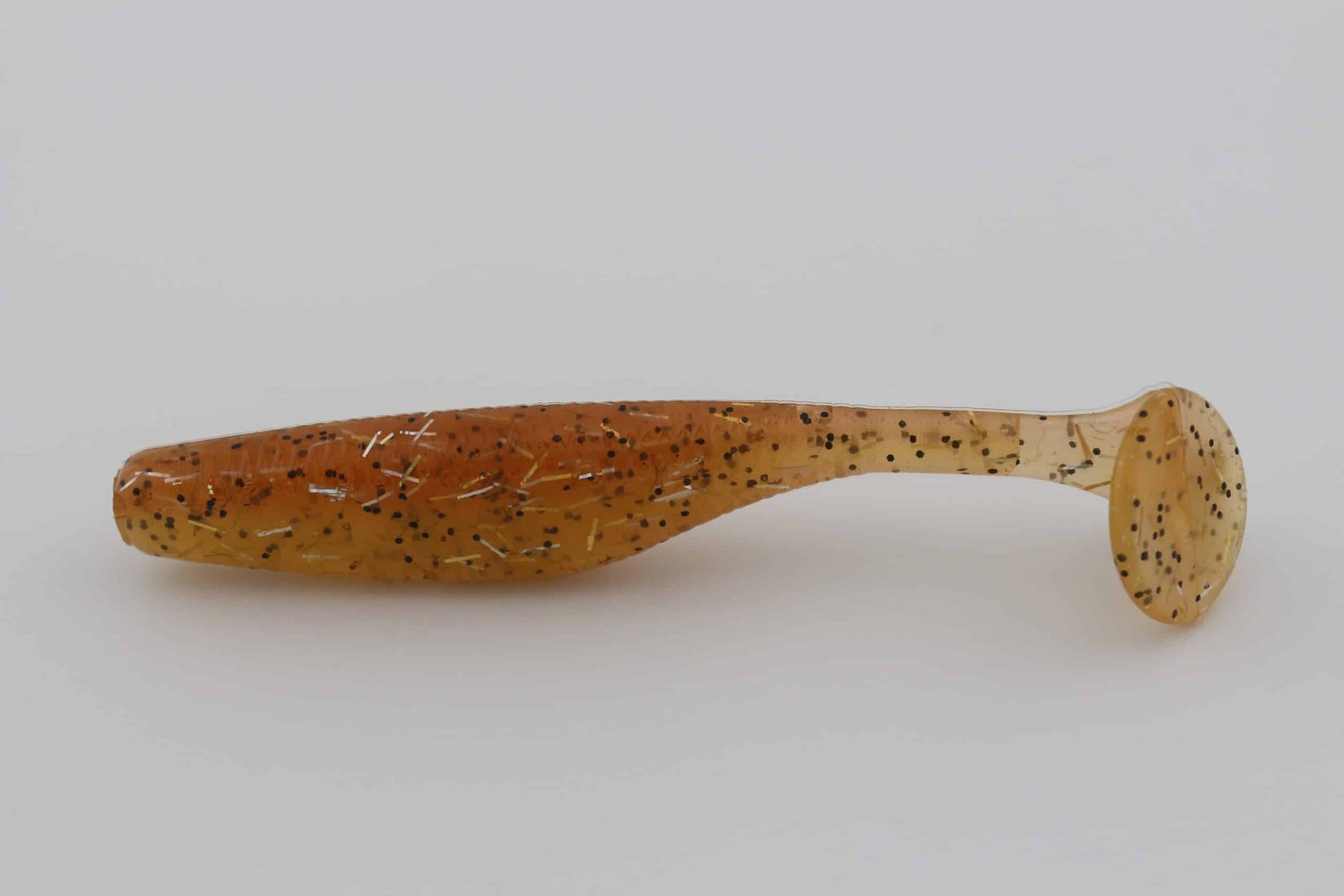 Georgia Peach is built with a Peach – 214 back and a Butterscotch – 203 belly, giving the bait a clear top-to-bottom contrast that reads naturally in the water. Suspended glitter—Gold Whisker, Silver Whisker (1/8 tsp), Night (0.025″) (1/16tsp)—adds controlled flash that mimics scale flicker as the bait rolls, swims, or pulses.