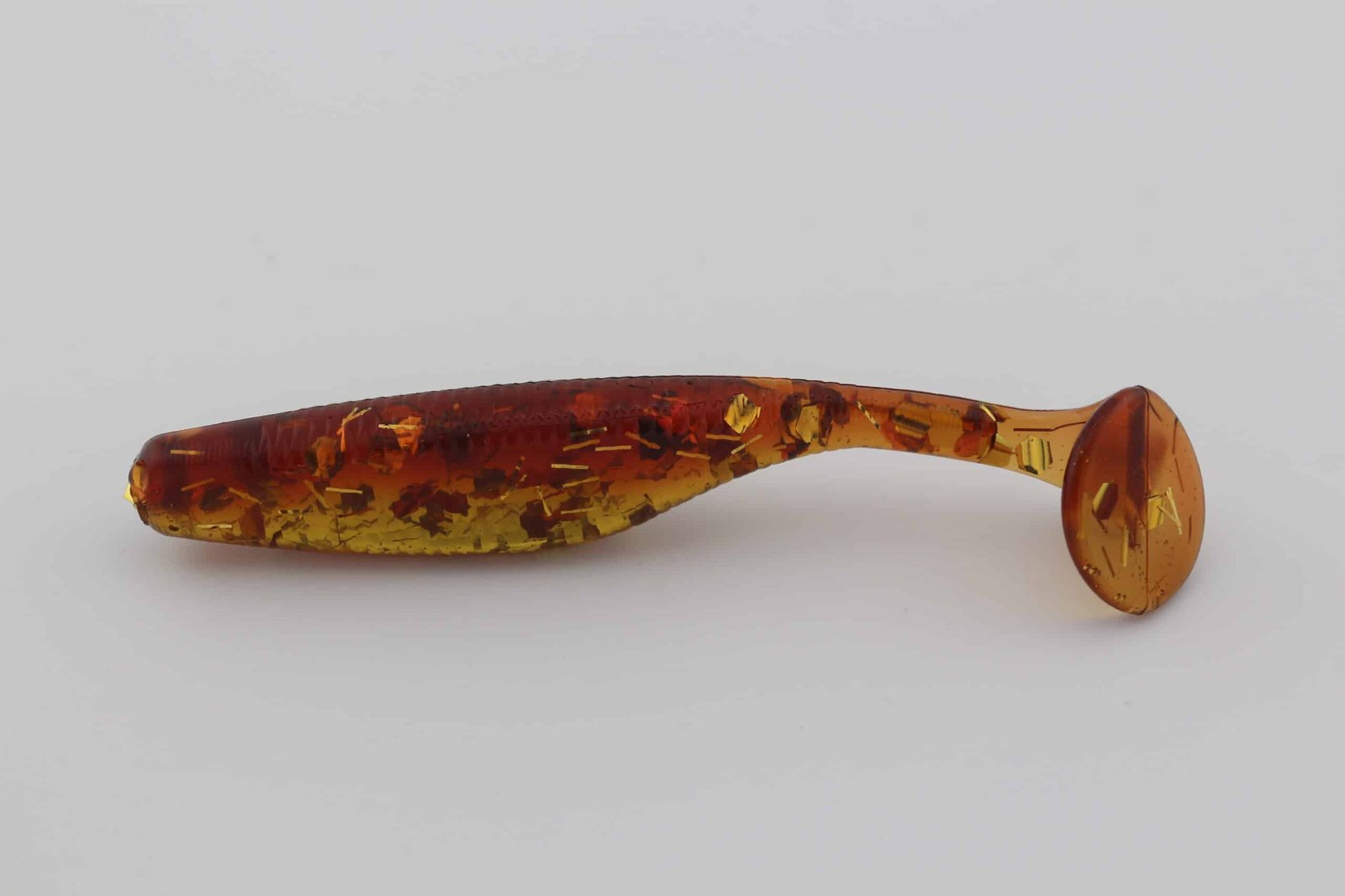 Mud Minnow is built with a Brown – 308 back and a Amber – 309 belly, giving the bait a clear top-to-bottom contrast that reads naturally in the water. Suspended glitter—Gold – 23 (0.125″) (1/8 tsp), Gold Whisker (1/8 tsp)—adds controlled flash that mimics scale flicker as the bait rolls, swims, or pulses.