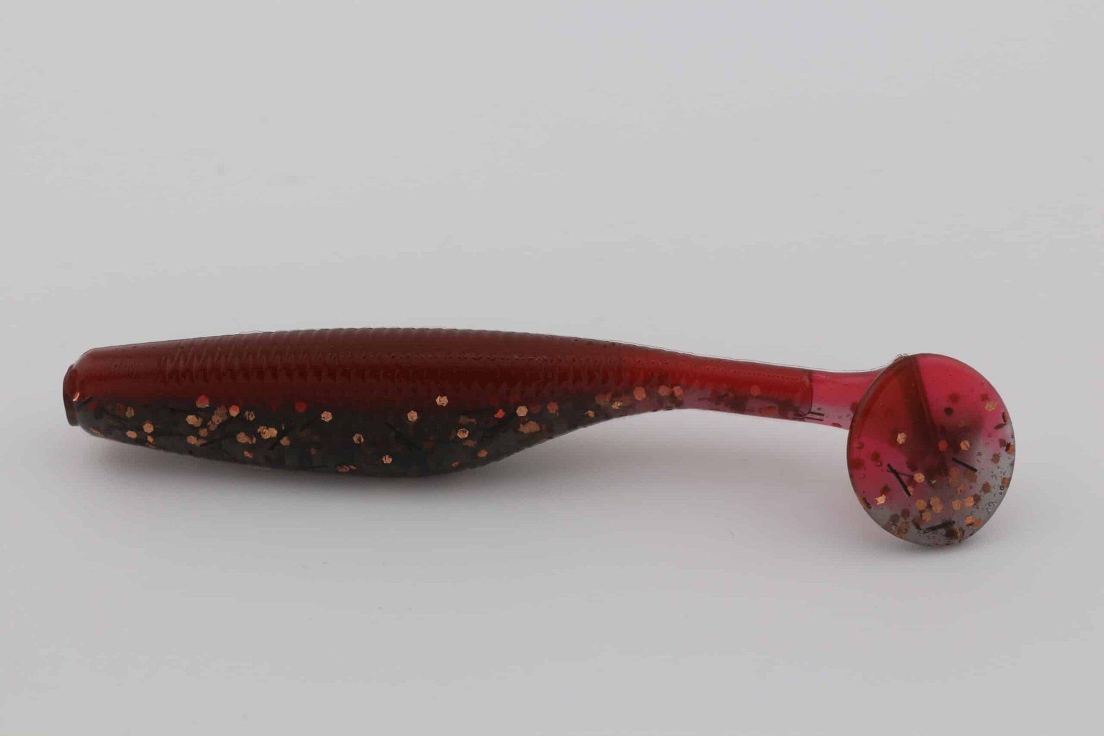 Nightcrawler is built with a Brick back and a Marshgrass, Black belly, giving the bait a clear top-to-bottom contrast that reads naturally in the water. Suspended glitter—Copper 4206 (0.040″) (1/4 tsp), Black Whisker (1/16 tsp)—adds controlled flash that mimics scale flicker as the bait rolls, swims, or pulses.