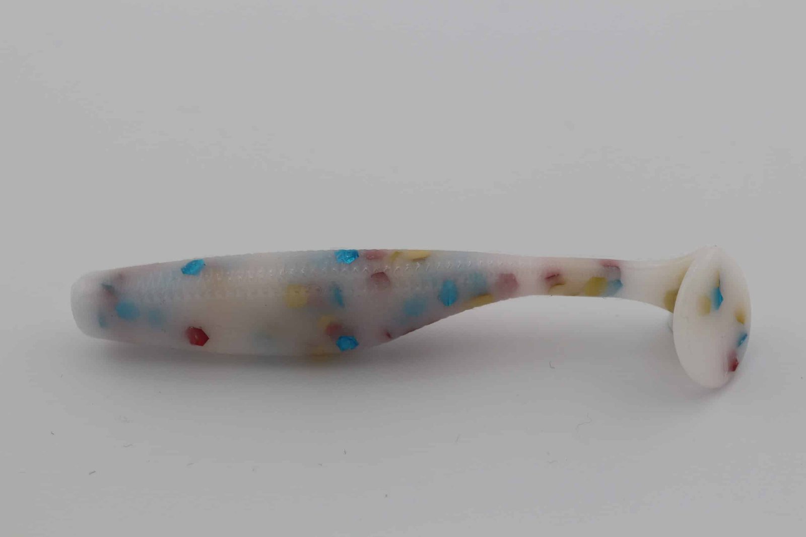Wonderbread leans on a White profile to create a confident silhouette that fish can track. Suspended glitter—Red – 04, Blue – 02, Gold -23 (XL) (1/8 tsp)—adds controlled flash that mimics scale flicker as the bait rolls, swims, or pulses.